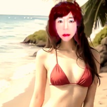 ビキニで女装した海岸で